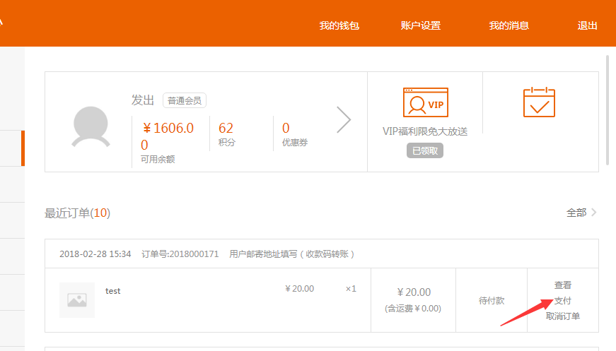 ④.如果还未付款就不小心关了上述页面,可以在订单中心里点击支付查看收款信息